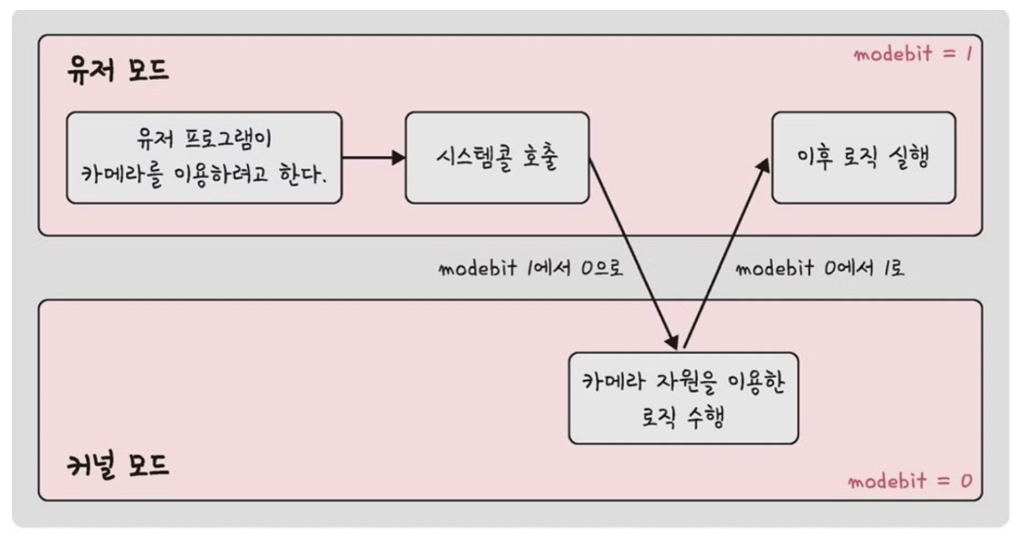 시스템콜 작동시 modebit 참고해서 유저모드와 커널모드 구분
