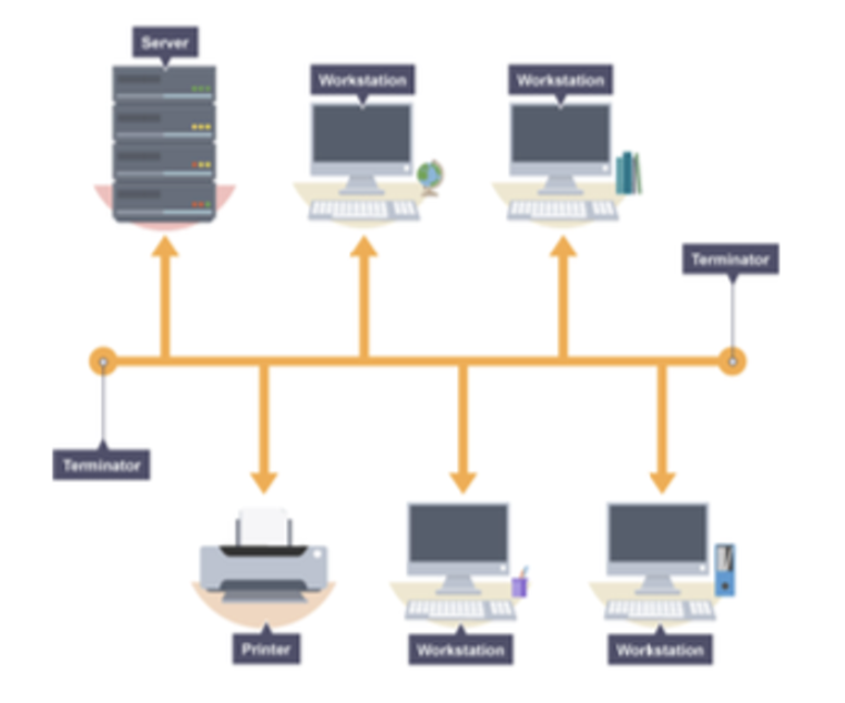 - 송신 컴퓨터가 전송한 신호는 중앙의 허브를 통해 모든 네트워크의 컴퓨터로 전해짐