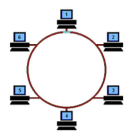 컴퓨터를 하나의 원을 이루도록 연결하며 각 장치는 고유한 주소를 갖는다.