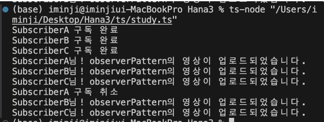 console.log('ObserverA님! 알림이 도착하였습니다.');
